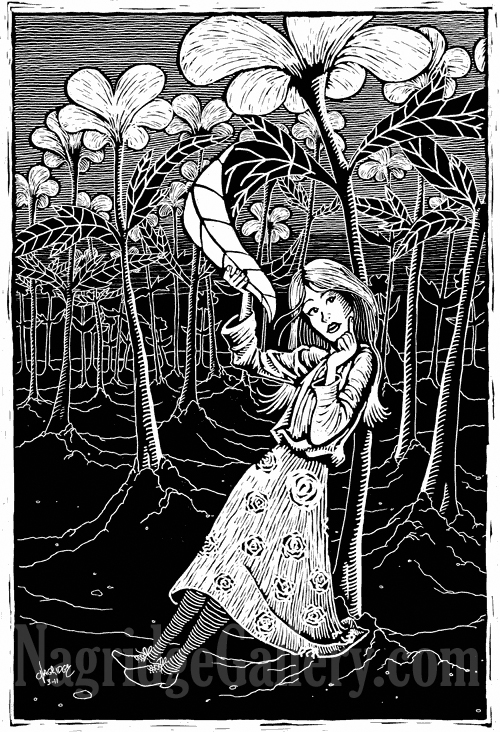 These are illustrations I created by using a technique where I draw all the areas I want white in black marker. Then I reverse the image in Photoshop. The final result simulates the look of a woodcut, a medium I also love working in.